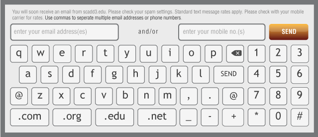The keyboard interface is a hybrid between the popular ipad keypad and a cellphone keypad. Popular email extensions are also available as buttons. Instructions and disclaimers appear at the top of the screen.